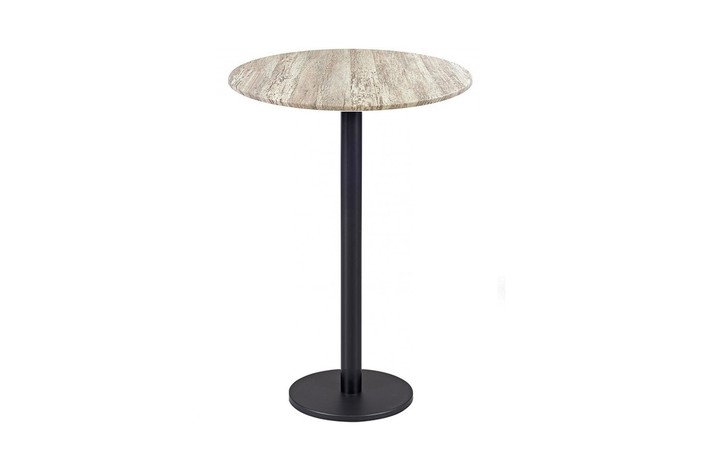 Mesa alta de diseño, multiusos, base de mesa de hierro + composite, revestida en epoxi color negro y tapa de 60 cms de diámetro a elegir.