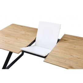 Mesa de diseño, extensible, armazón metálico con acabado negro, tapa y ampliación de DM bilaminado