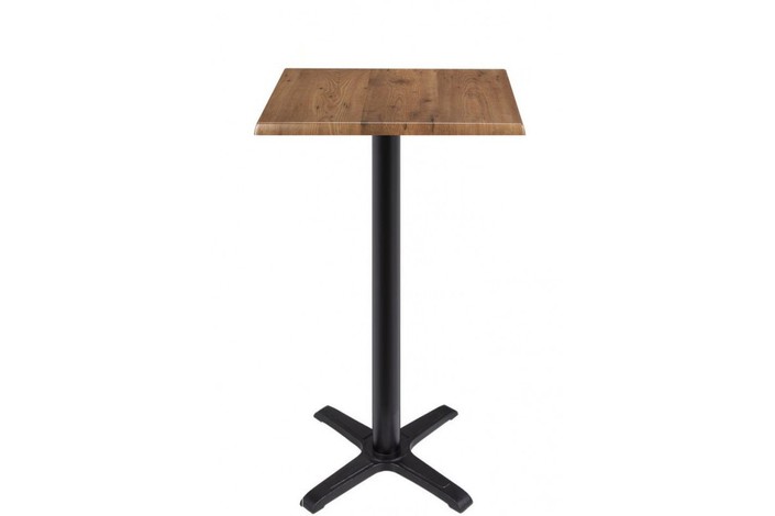 Mesa alta de diseño, multiusos, base de hierro acabado negro, tapa de 70 x 70 cms.