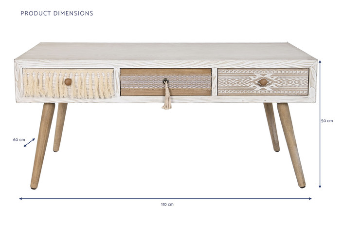 MESA CENTRO ABETO ALGODON 110X60X50 BLANCO