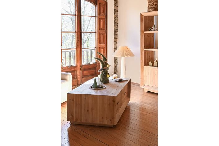 Dimensiones (cm) Longitud 130  |  Fondo 70  |  Altura 46 Peso neto producto (kg) 40,00 Material Abeto  |  Mdf