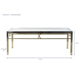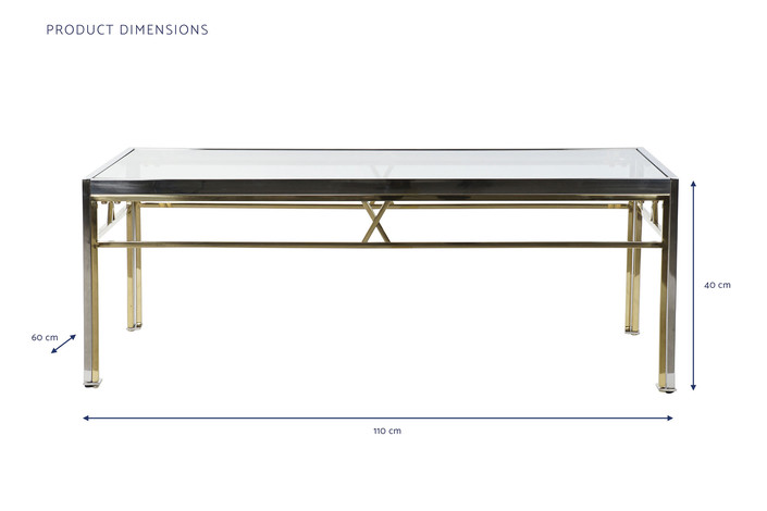 Dimensiones (cm) Longitud 110  |  Fondo 60  |  Altura 40 Peso neto producto (kg) 17,00 Material Acero  |  Cristal