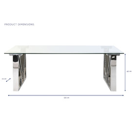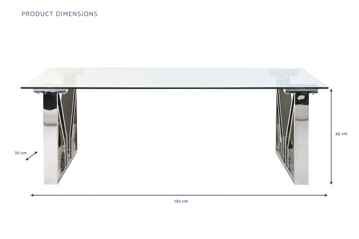 Dimensiones (cm) Longitud 130  |  Fondo 70  |  Altura 45 Material Acero  |  Cristal