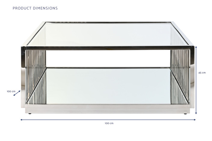 Dimensiones (cm) Longitud 100  |  Fondo 100  |  Altura 45 Material Acero  |  Espejo