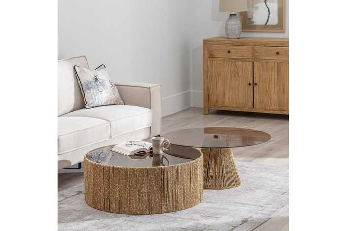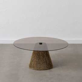 MESA CENTRO CRISTAL-FIBRA NATURAL SALÓN 80 X 80 X 35 CM