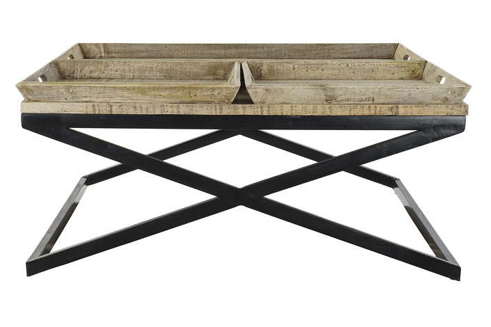 MESA CENTRO MADERA METAL 120X120X55 BANDEJA