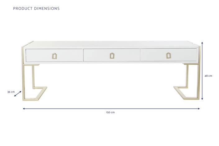 Dimensiones (cm) Longitud 150  |  Fondo 36  |  Altura 48 Peso neto producto (kg) 18,00 Material Madera  |  Metal