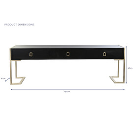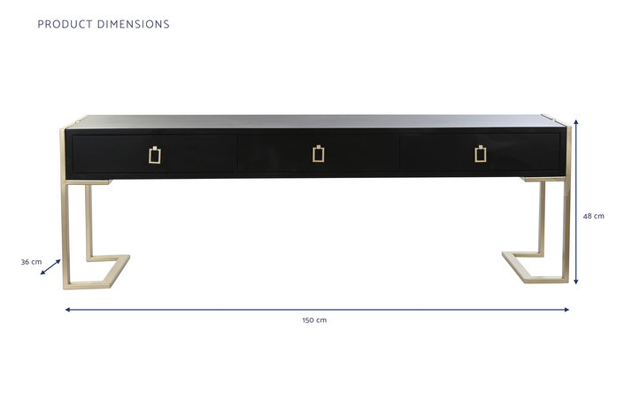 Dimensiones (cm) Longitud 150  |  Fondo 36  |  Altura 48 Peso neto producto (kg) 18,00 Material Madera  |  Metal