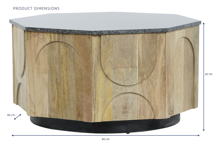 Dimensiones (cm) Longitud 80  |  Fondo 80  |  Altura 45 Material Mango  |  Marmol