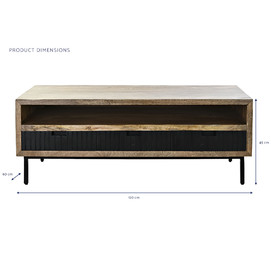 Dimensiones (cm) Longitud 120  |  Fondo 60  |  Altura 45 Peso neto producto (kg) 42,40 Material Mango  |  Metal