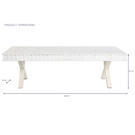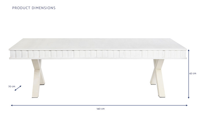 Dimensiones (cm) Longitud 140  |  Fondo 70  |  Altura 42 Peso neto producto (kg) 29,00 Material Mango  |  Metal