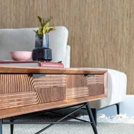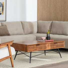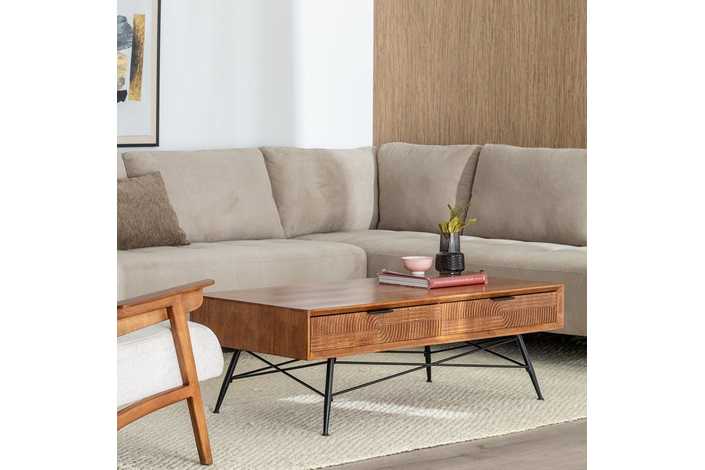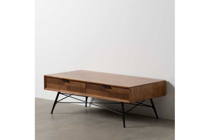 MESA CENTRO MARRÓN-NEGRO MADERA-METAL 120 X 60 X 40 CM