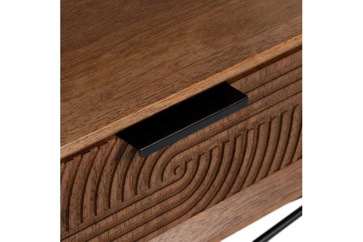 Material: madera de caucho - hierro Altura patas: 25cm. Medida cajones: 57.5x11cm. Precisa montaje.
