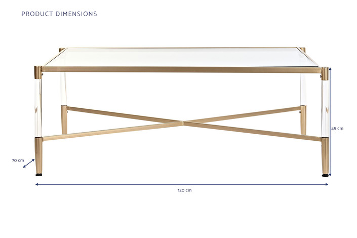 Dimensiones (cm) Longitud 120  |  Fondo 70  |  Altura 45 Material Metal  |  Acrilico