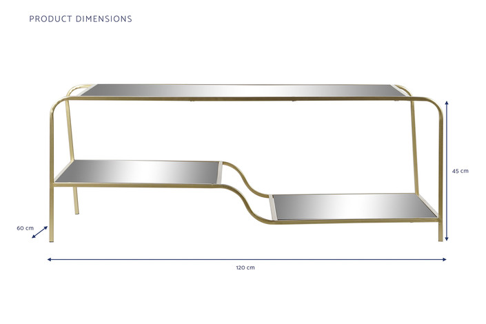 Dimensiones (cm) Longitud 120  |  Fondo 60  |  Altura 45 Peso neto producto (kg) 17,00 Material Metal  |  Espejo