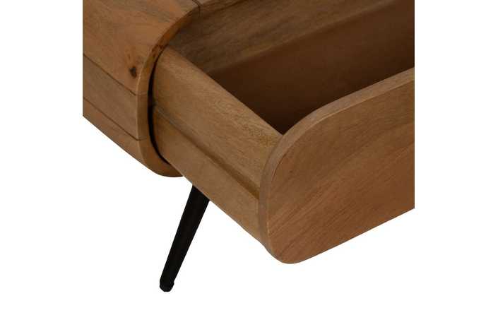 Material: madera de mango, hierro. Cajón: 58x16cm. Hueco: 58x16,5cm. Altura patas: 22cm.