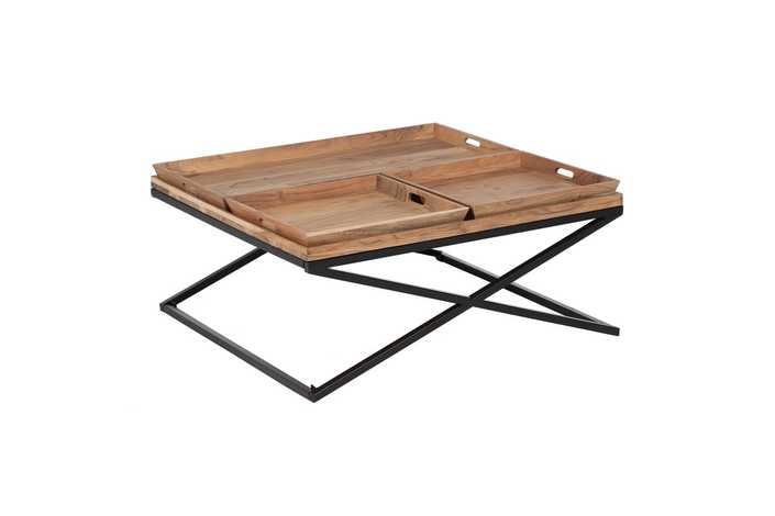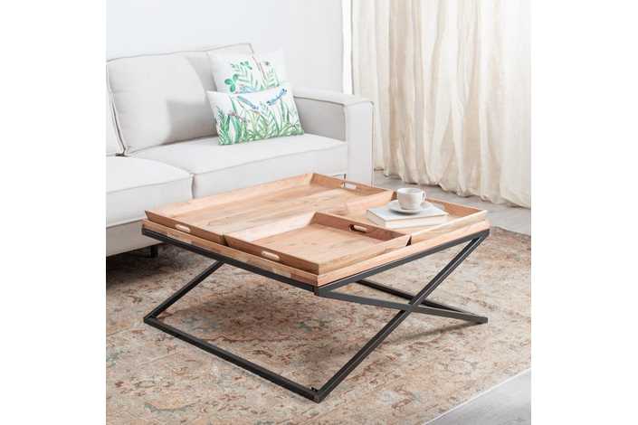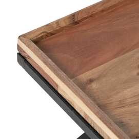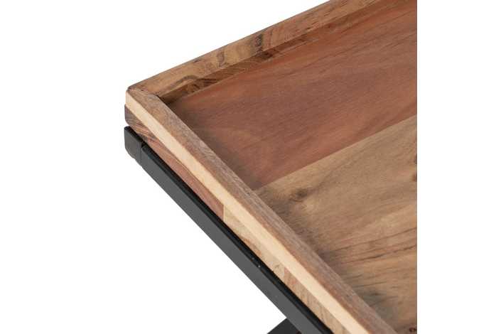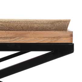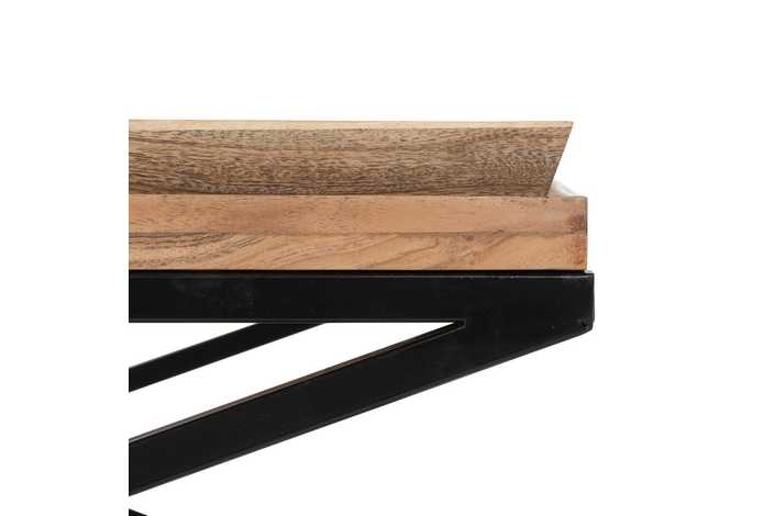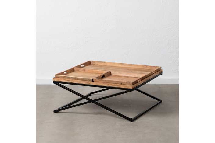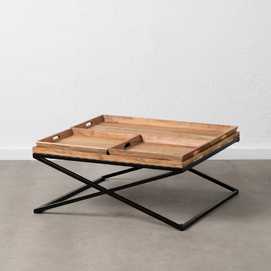 Material: Madera de mango y hierro. Altura patas: 33cm Bandeja grande: 84x42x5cm Bandeja pequeña: 42x42x5cm.