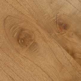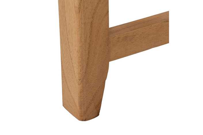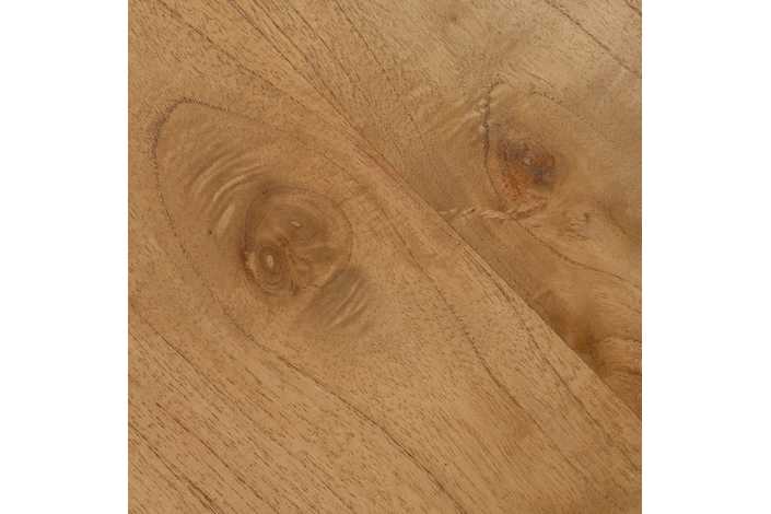 Material: madera de mindi. Grosor tablero: 2,5cm. Altura patas hasta travesaño: 8cm.