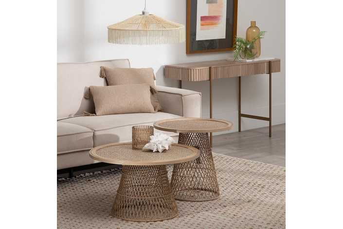 MESA CENTRO NATURAL METAL-RATÁN 70 X 70 X 39,50 CM