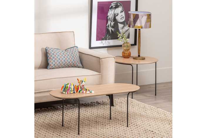 Material: top Dm forrado de vinilo natural imitación roble - patas de hierro Altura patas: Precista montaje.