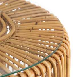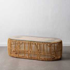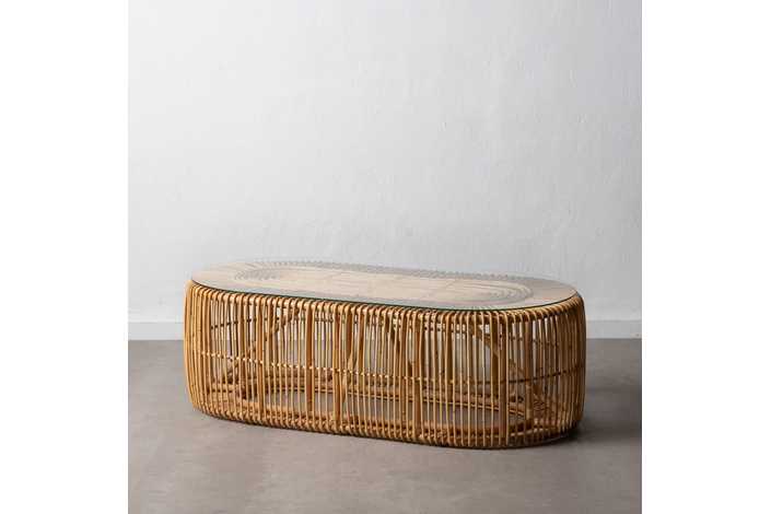 MESA CENTRO NATURAL RATÁN / CRISTAL 130 X 65 X 43,50 CM