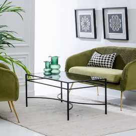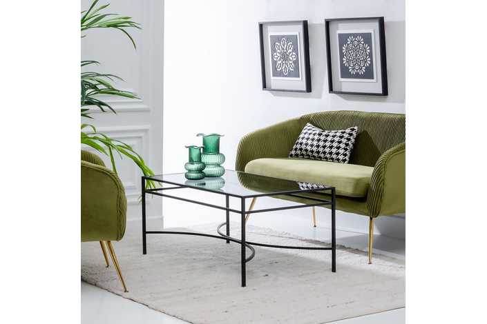 MESA CENTRO NEGRO METAL / CRISTAL SALÓN 100 X 60 X 45,50 CM