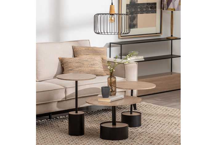 MESA CENTRO NEGRO-NATURAL DM-METAL 65 X 65 X 37,50 CM