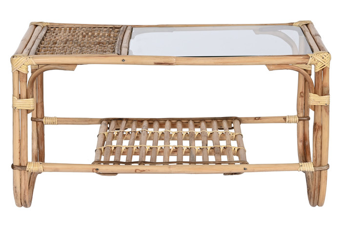 Dimensiones (cm) Longitud 76  |  Fondo 46  |  Altura 40 Peso neto producto (kg) 6,00 Material Ratan  |  Bambu