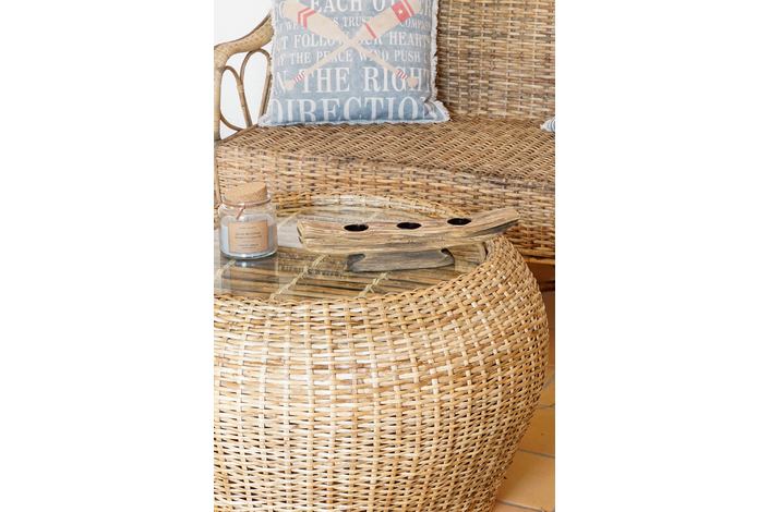 Dimensiones (cm) Longitud 82  |  Fondo 82  |  Altura 48 Peso neto producto (kg) 7,00 Material Ratan  |  Cristal