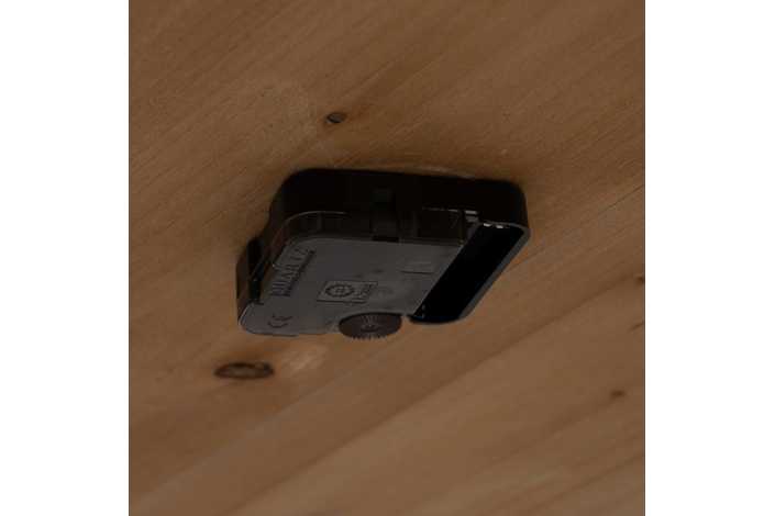 Material: estructura principal madera de abeto - DM Rosh Certificate Bateria: AA 1.5v Altura pata: 37cm. Precisa montaje.
