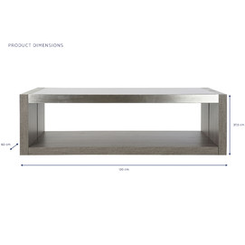 Dimensiones (cm) Longitud 120  |  Fondo 60  |  Altura 37,5 Peso neto producto (kg) 30,50 Material Roble  |  Aluminio  |  Cristal templado