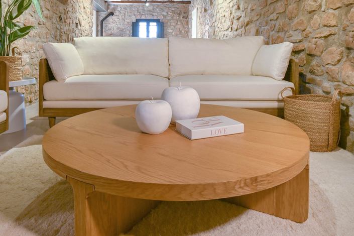 Dimensiones (cm) Longitud 121  |  Fondo 121  |  Altura 31,5 Peso neto producto (kg) 34,70 Material Roble  |  Mdf
