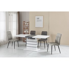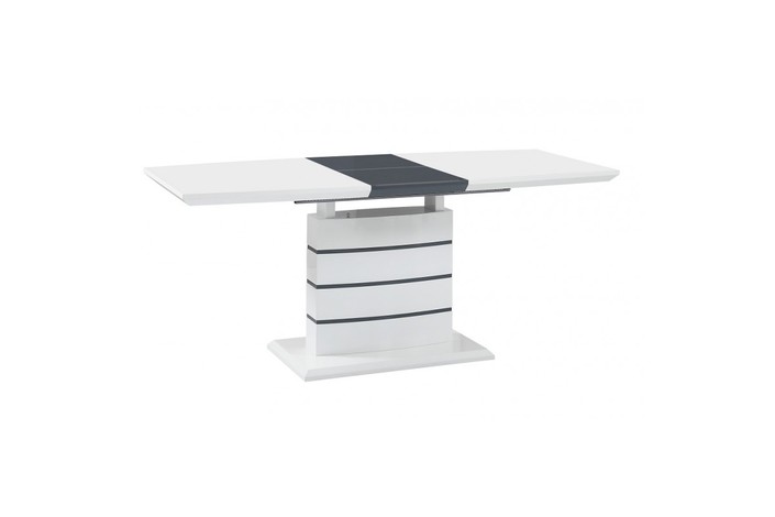 Mesa de diseño, extensible, tapa de MDF lacado blanco. Ampliación de DM bilaminado