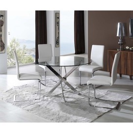 Mesa CHANTAL 100, cromada, cristal, 100 cms diámetro