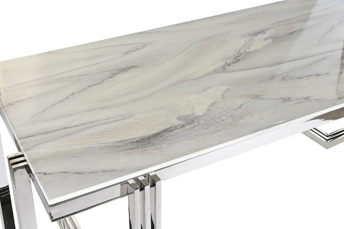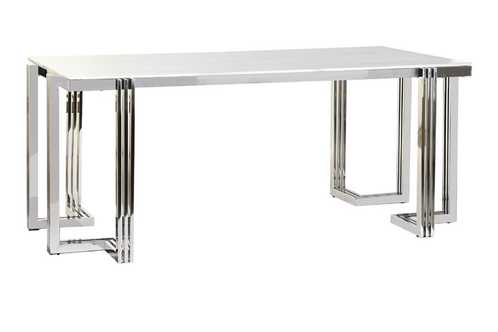 MESA COMEDOR ACERO CRISTAL 180X90X76 SIMIL MARMOL