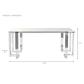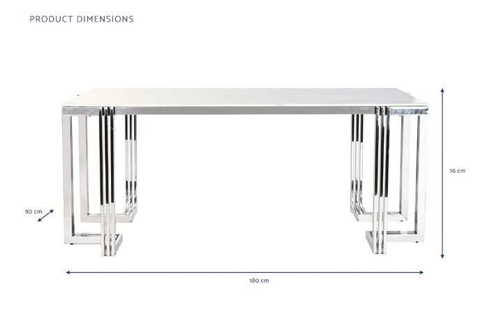 Dimensiones (cm) Longitud 180  |  Fondo 90  |  Altura 76 Material Acero  |  Cristal