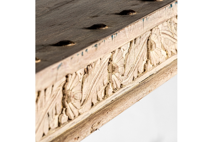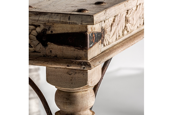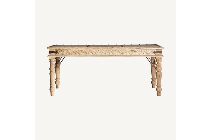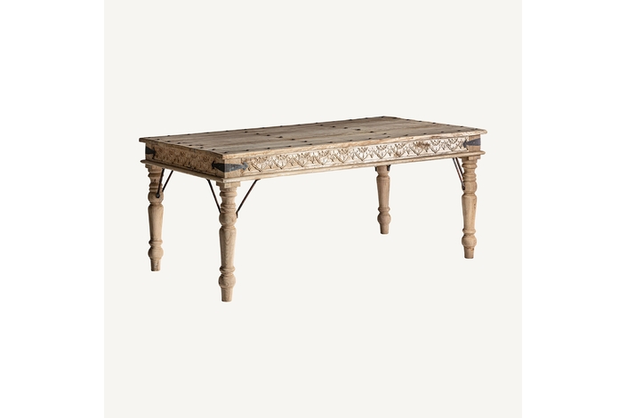 Mesa comedor betan, en color marrón envejecido, de estilo étnico. Fabricado en madera de mango.