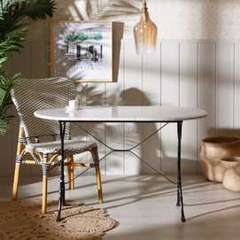 Material: hierro, mármol. Precisa montaje. El mármol es un material natural con variaciones en su aspecto.