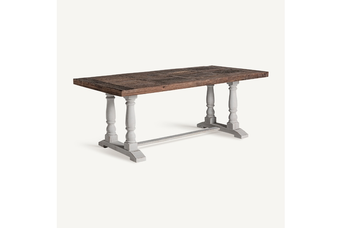 La Mesa Comedor Cirella, de 200x101x78cm, manifiesta una elegancia sutil y consciente del medio ambiente. Realizada en madera de olmo reciclado y mango, su diseño mezcla tonos blancos y naturales, ofreciendo una estética fresca y serena. Esta mesa comedor tono blanco/madera es un testimonio de sostenibilidad y estilo refinado.