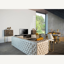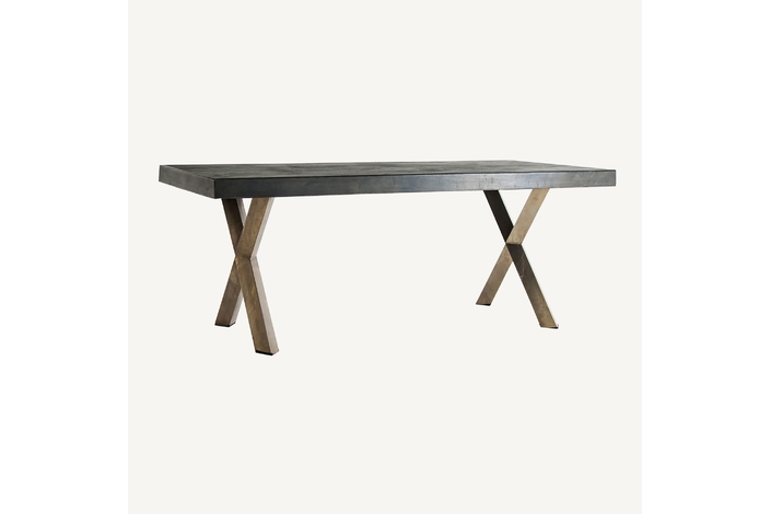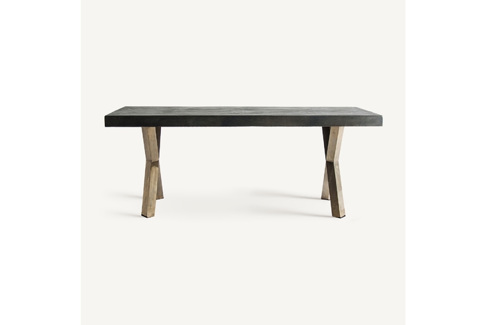 Transforma tu comedor con la Mesa Kapie de VICAL Home, de 200x90x76cm. Combina magistralmente hierro y madera de olmo, presentada en un sofisticado color oro. Esta mesa de comedor de madera de olmo y orono es solo un mueble, sino una declaración de estilo que pone el lujo y la robustez al alcance de la mano.