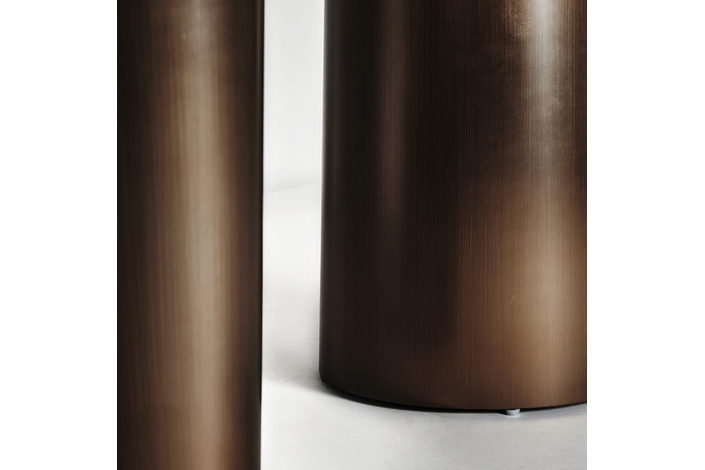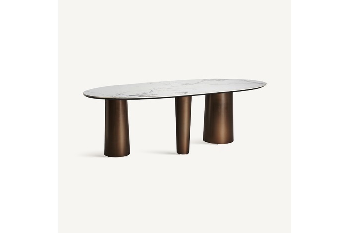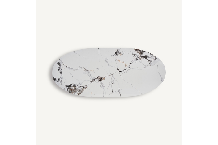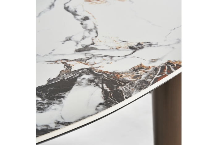 Mesa comedor laggan, en color blanco/marrón, de estilo art deco. Fabricado en acero, combinado con mármol sintético. Producto desmontable.