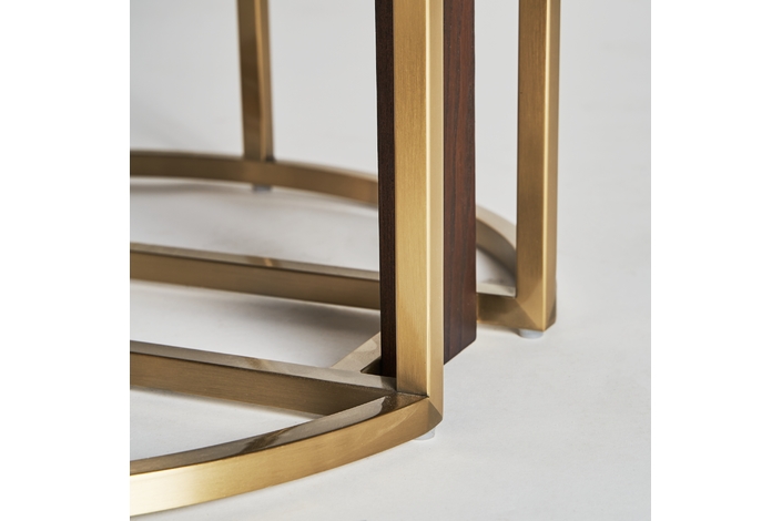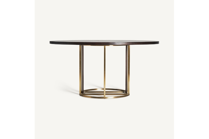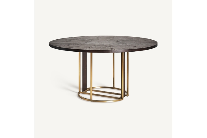 Mesa comedor leira, en color oro, de estilo art deco. Fabricado en acero. Producto desmontable.