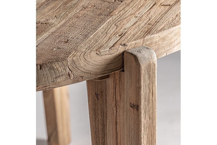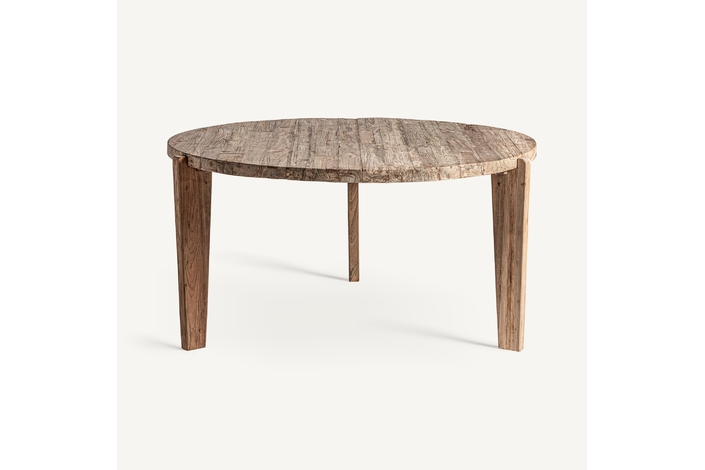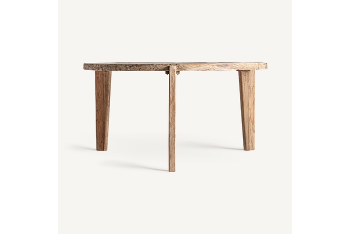 La Mesa Comedor Lux celebra la belleza de la reutilización con su construcción en madera de teka reciclada. Con dimensiones de 156x156x77cm, esta mesa redonda se apoya en tres patas robustas, ofreciendo un equilibrio perfecto entre arte, ecología y funcionalidad. Una pieza que cuenta su propia historia.