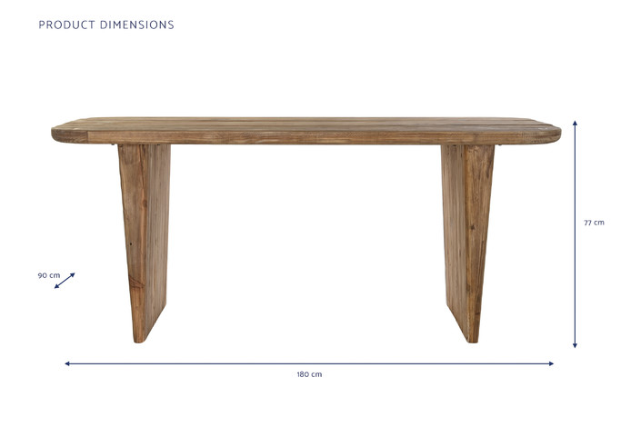 Dimensiones (cm) Longitud 180  |  Fondo 90  |  Altura 77 Peso neto producto (kg) 45,00 Material Madera reciclada  |  Pino