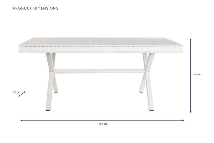 MESA COMEDOR MANGO METAL 180X90X76 ROMBO BLANCO