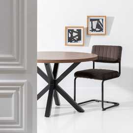 MESA COMEDOR MARRÓN-NEGRO DM-METAL 120 X 120 X 76 CM