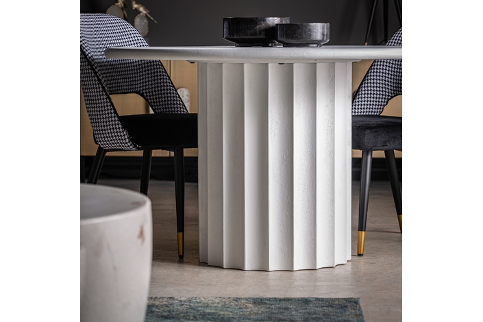Descubra la serenidad con la Mesa Comedor Mulcey. De 120x120x77cm, esta pieza redonda fusiona resina, grava y madera DM en un diseño encantador. Su acabado blanco invita a una experiencia de comedor tranquila y refrescante, mientras aporta una estética contemporánea y calmada a su espacio.