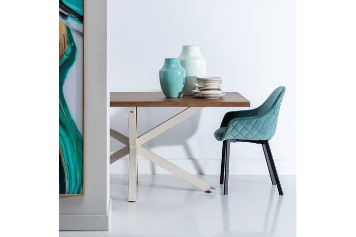 MESA COMEDOR NATURAL-BLANCO DM-METAL 180 X 90 X 76 CM