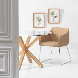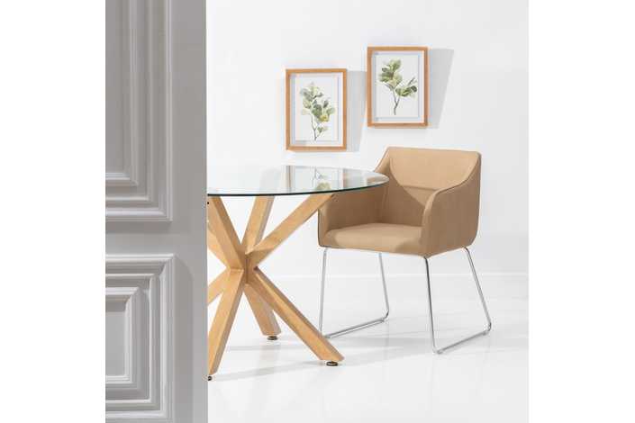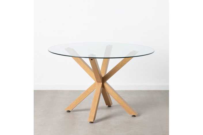 MESA COMEDOR NATURAL CRISTAL-METAL 120 X 120 X 76 CM