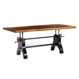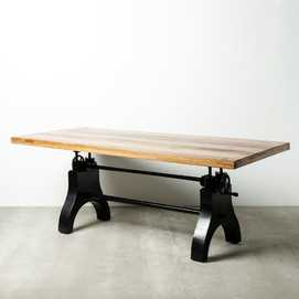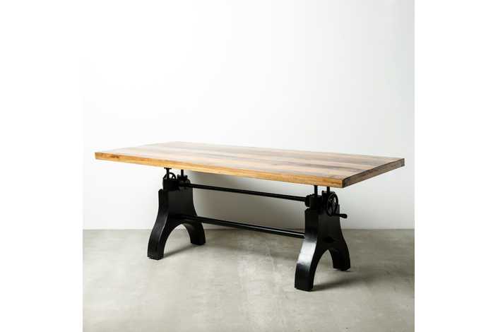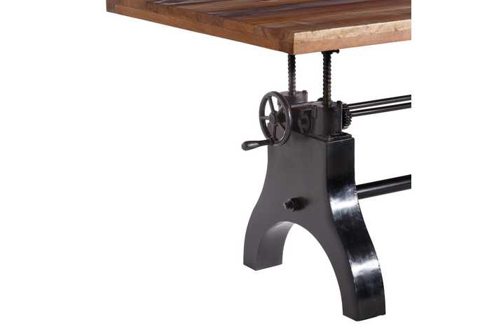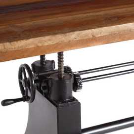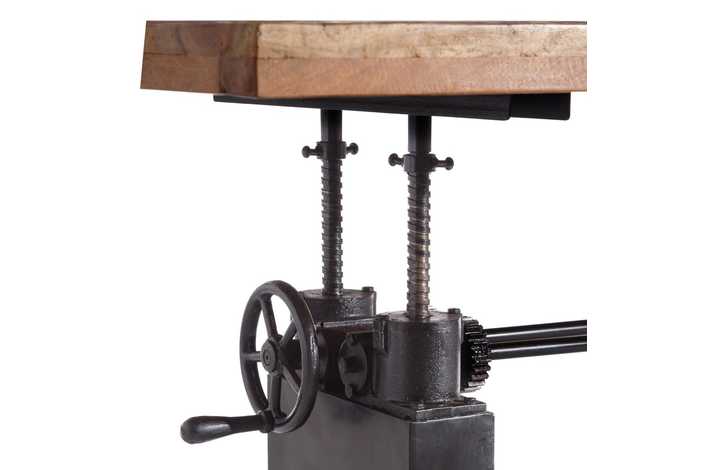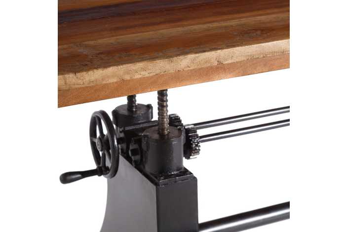 MADERA RECICLADA ALTURA REGULABLE DE 75-101M GRACIAS A UNA POLEA LATERAL QUE LLEVAN LAS PATAS. GROSOR 6CM. MEDIDA ENTRE PATAS: 125CM.